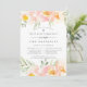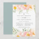 Elegant watercolor floral invitation for your daughter's first holy communion frames your church ceremony and party details with a border of sheer pastel watercolor flowers in light peach and blush pink, with mint green foliage. A tiny cross completes the design.
