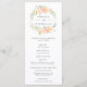 Our garden chic wedding program features your ceremony details in elegant grey lettering, with your names encircled by a wreath of pastel peach watercolor flowers and springy mint green foliage. Reverse side lists the members of your wedding party with easily editable text fields. Coordinates with our Airy Floral wedding invitation collection for summer, spring, outdoor or garden weddings. Use the template fields to add your ceremony and bridal party information, and then click "Customise It" to reposition elements if needed. Need help? Contact me via the "Ask this Designer" link on this page.
