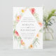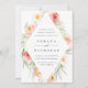 Modern floral wedding invitation in sheer pastel watercolors features a diamond shaped geometric border of painted blooms in pale peach and mint green, with your wedding details in soft grey lettering.