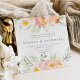 Our chic floral wedding invitation in a unique square format frames your wedding details with a top and bottom border of painted watercolor flowers and foliage in soft shades of peach and pastel green. Coordinates with our Airy wedding and event collection.