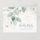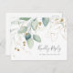 This airy greenery and gold song request RSVP postcard is perfect for a modern wedding. The elegant botanical design features light and airy watercolor eucalyptus accented with whimsical gold glitter leaves. Build your wedding guest list and your dance floor song list all at once! This wedding response postcard conveniently asks guests if they will be able to attend your wedding, and also what song will get them to dance.