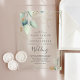 The elegant botanical design features light and airy watercolor eucalyptus accented with whimsical gold leaves.