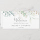 This airy greenery hanging seating chart welcome header is perfect for a modern wedding. The elegant botanical design features light and airy watercolor eucalyptus accented with whimsical gold glitter leaves. The card prints on the front and back (double-sided). Please check the collection for the coordinating table number seating chart cards.