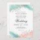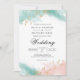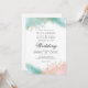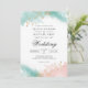 A wash of soft watercolor in teal and coral hues creates a dreamy, ethereal backdrop. Delicate golden accents add a touch of elegance to this romantic design.
