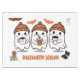 Trois petits fantômes adorables, bonnets orange sur la tête, boisson chaude à la main, entourés de citrouilles sculptées, de chauves-souris et de squelettes amusants. Le texte “HALLOWEEN SEASON” capture l’ambiance automne + café chaud, douce et festive plutôt que terrifiante. Illustration noir / orange / blanc pour des produits d’Halloween mignons et cosy (mugs, sweats, couvertures, cadeaux).