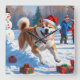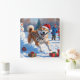 Akita Christmas Festive Snow Scene Square Wall Clock