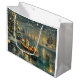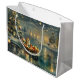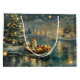 Set sail into the magic of the holiday season with this beautifully detailed illustration, showcasing a proud dog sitting in a festively decorated boat, gliding across a serene Christmas lake. The twinkling lights from nearby pine trees reflect off the water, casting a warm, festive glow that enhances the cosy ambiance. Ornaments dangle from the boat's sides, while glowing lanterns light the way, creating a scene that captures the true essence of Christmas warmth and joy. This nostalgic artwork brings a touch of holiday magic to any space, perfect for those who cherish the spirit of the season.