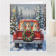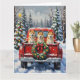 Celebrate the holiday season with this majestic Akita Christmas design! This dignified scene features three powerful, thick-coated Akitas sitting alertly in the back of a classic red pickup truck, perfectly suited for the beautiful snowy winter forest setting. The vintage truck is adorned with a vibrant Christmas wreath, twinkling with red and gold ornaments and warm, glowing lights. Abundant snowflakes fall around the scene, truly creating a winter wonderland. With a decorated Christmas tree in the background, this design is perfect for capturing the joyful spirit of the holidays and makes an excellent Christmas gift for any Akita owner, dog lover, or admirer of festive and magnificent dog art.