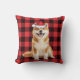 An Akita dog makes a cute Christmas pillow in his red Santa hat, then paired with a red buffalo holiday plaid to brighten the pet lover's holiday home decor.