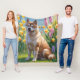 Akita Dog Spring Flowers Painting Fleece Blanket