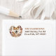 The left side of these return address labels feature a portrait of a beautiful gold and white Akita Inu dog. The image is enclosed within a pretty autumn floral and leaf wreath in tones of brown, tan, and cream. Your custom text is in brown and gold brown at the right.