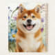 A sweet Shiba Inu or Akita dog sits with a watercolor wash of various blue flowers on a standard size desk planner for school, home and office, sure to keep the dog lover smiling.