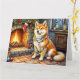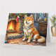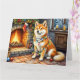 Akita Sitting by Fireplace with Christmas Lights Card