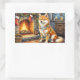 Akita Sitting by Fireplace with Christmas Lights Rectangular Sticker