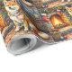 Akita Sitting by Fireplace with Christmas Lights Wrapping Paper