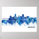 Blue Watercolor Skyline of Akron, a city in Ohio