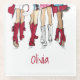 A vibrant fashion illustration showcasing ladies confidently dressed in stylish crimson red outfits on a glass coaster, complete with cowboy boots and hats. Personalise with a name below for a special tough. This coaster captures the excitement and camaraderie of game days, tailgating, and special celebrations like graduations or birthdays.