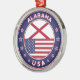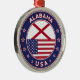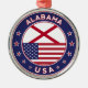Badge of Alabama with flag of Alabama and flag of USA colors, rounded shape.