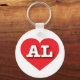 This key chain features a vibrant red heart containing bold white upper case letters AL, the official abbreviation for Alabama, the yellowhammer state.