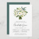 Elegant floral christening, baptism or baby dedication invitations feature a bouquet of watercolor white roses and peonies with lush green botanical foliage and leaves. Personalise with your religious ceremony and party details beneath in a chic mix of block, serif and calligraphy typefaces.
