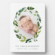 Chic photo plaque frames a favourite photo of your sweet little one with an oval wreath of green watercolor foliage and white flowers. Personalise with baby's name and birth stats beneath for a unique and elegant keepsake for new parents.