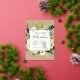 Elegant and modern floral engagement party invitation features a background of ivory roses and peonies with lush green botanicals and foliage with real gold foil trim. Your engagement party details are overlaid on a sheer white element in elegant inky off-black lettering accented with handwritten style calligraphy. A speckled brown kraft background adds rustic charm.