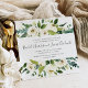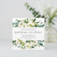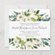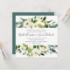 Our Alabaster wedding invitation in a unique square format frames your wedding details with a top and bottom border of painted watercolor greenery, botanical foliage and white rose and peony flowers.