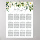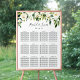 Wedding seating chart matches our Alabaster Floral collection, featuring lush watercolor botanical greenery and white flowers framing your guest seating details.