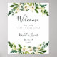 Welcome guests to your wedding with our Alabaster Floral poster, featuring lush watercolor botanical greenery and white flowers, with "welcome to our happily ever after," your names, and wedding date in a chic mix of modern block and hand lettered calligraphy typefaces.