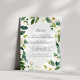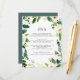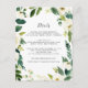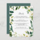 Designed to coordinate with our Alabaster wedding collection, this fresh green botanical and floral guest information card features a border of greenery, foliage and white flowers encircling your key wedding details, like hotel accommodations, welcome reception information, website and more. Add your custom text using the fields provided and use the Customise function to adjust fonts, sizes and spacing.