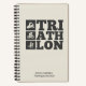 Notebook with bold graphical design splitting the word "TRIATHLON" into three components aligned alongside recognisable icons representing the three events - SWIM, BIKE, RUN. Design available in a curated collection of rich modern colours. Perfect training journal, nutrition log, planning tool, motivation notes, etc.