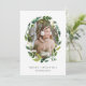Elegant botanical holiday cards feature your a favourite photo encircled by an oval wreath of lush green foliage and white flowers. Personalise with your custom greeting and names beneath; shown with "Merry Christmas."