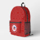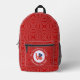 Personalised backpack showing the Ålander LOVE FLAG. The word LOVE is featured in red letters inside a white, fractal circle of squiggly squares. The circle sits on a red, fractal background, also, of squiggly squares. Perfect gift for Valentine's Day or any special time. Can be customised for any holiday and personalised with any name.