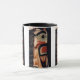 Alaskan carved wooden totem pole coffee, tea mug, cup. Exquisite designed featuring 3 pictures around the perimeter of the cup. Two tone mug is customisable, and printed in full colour. Great for gifts, or home use.