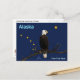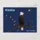 A Bald Eagle (Haliaeetus albicilla) scans the sky from his perch on a tree branch; superimposed on a flag of Alaska. Text reading "Alaska" also appears in glowing blue and white. Add your own additional text.