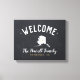 Modern farmhouse wall art welcome sign personalised with your family name and city or other custom text on a faux chalkboard background. Click Customise It to move the heart to any location on the state map and further personalise the text. Custom name signs make a perfect housewarming or wedding gift for couples and families!