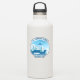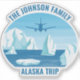 Cool custom Alaska vacation laptop or water bottle sticker for your family trip with glacier and ocean design and your personalised name. Icebergs float in the sea under a blue aeroplane on this keepsake souvenir of your arctic exploration of ice caps in the Pacific ocean.