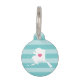 Let your furry friend show some home state pride with this cute Alaska ID tag. Design features a white silhouette map of the state of Alaska with a pink heart inside, on a tone on tone turquoise stripe background. Add your pet's name and contact information to the back in white lettering on an aqua background.