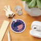 Badge of Alaska with flag of Alaska and flag of USA colors, rounded shape.