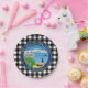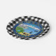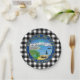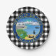 Paper Plates: Rustic Alaska party plates featuring Alaska emblem / flag surrounded by black and white buffalo plaid pattern - love my country, festive decor, national patriots / sports fans