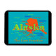 Colourful Alaska state pride pop art image including map silhouette with cities, towns and motto.