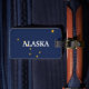 A graphic Alaska State Flag on a luggage tag. The luggage tag has the (customisable) text Alaska or the text of your choice on the front and templates for your personalisation on the back.