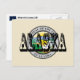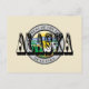 A post card showing the words "Alaska" over the state seal of Alaska. Great Alaska souvenir.