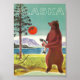 Alaska Vintage Travel Poster with Bear and Fish. Colourful retro vintage poster.
