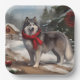 Alaskan Malamute Dog in Snow Christmas Paper Plate