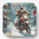 Alaskan Malamute Dog Riding Motorcycle Christmas Paper Plate