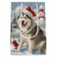 his festive design captures the joyful spirit of the holiday season, featuring an adorable pup wearing a Santa hat. The cat is nestled in a winter wonderland, complete with a snowman, a decorated Christmas tree, and beautifully wrapped presents. Snowflakes gently fall, adding a magical touch to the scene, while the vibrant colours of the holiday decorations create a warm and cheerful atmosphere.