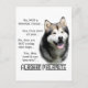A comical way to tell folks that your dog is an Alaskan Malamute. This dog design lists the answers to some of the most common questions you are always asked about your favourite breed of dog. If you would like another dog breed featured in this design, please email us at greywolfcreation@yahoo.com.