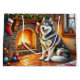 This heartwarming Christmas illustration features a majestic Alaskan Malamute sitting beside a glowing fireplace, wrapped in sparkling Christmas lights with festive stockings hanging above. The breed’s fluffy coat, friendly expression, and winter-loving spirit bring extra warmth to this cozy holiday scene. Perfect for Alaskan Malamute fans, seasonal décor lovers, and Zazzle shoppers looking for unique Christmas artwork celebrating their favorite Arctic breed.