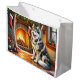 Alaskan Malamute Fireplace with Christmas Lights Large Gift Bag